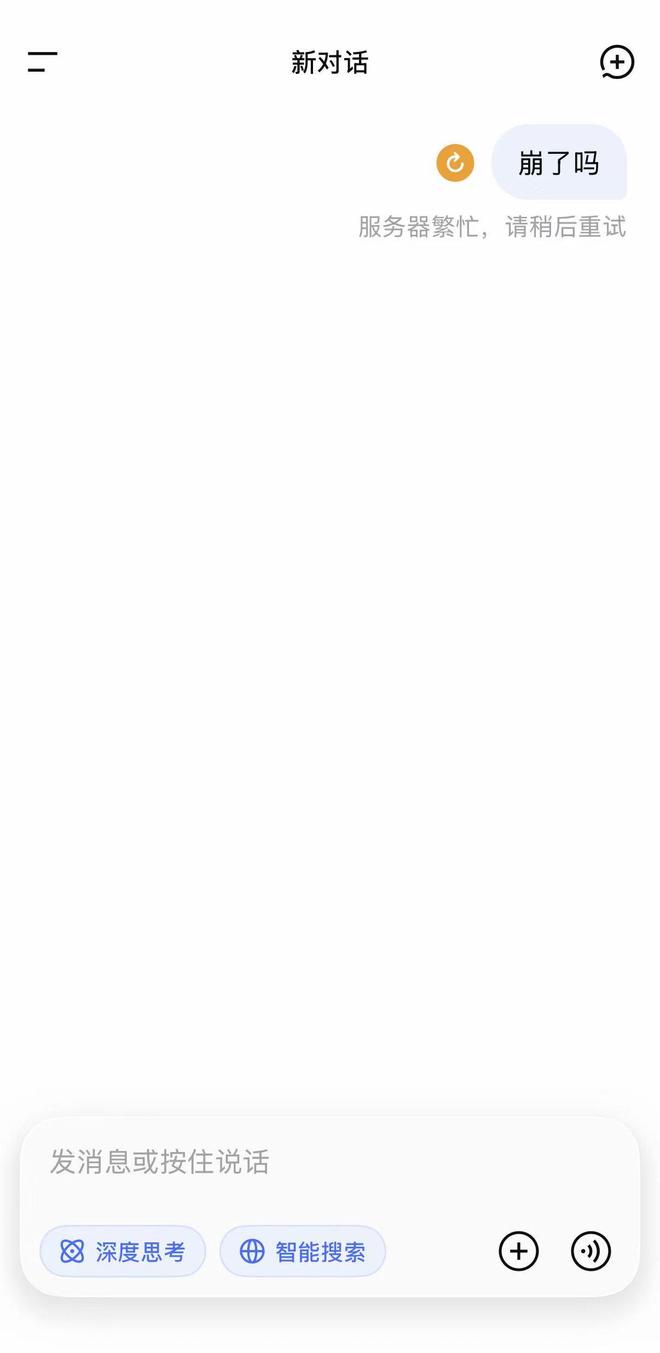 今日晚间,有网友反映DeepSeek出现服务器故障,“DeepSeek 崩了”话题登上微博热搜。 三言测试发现,DeepSeek还未恢复正常,提示“服务器繁忙,请稍候再试”。 全文