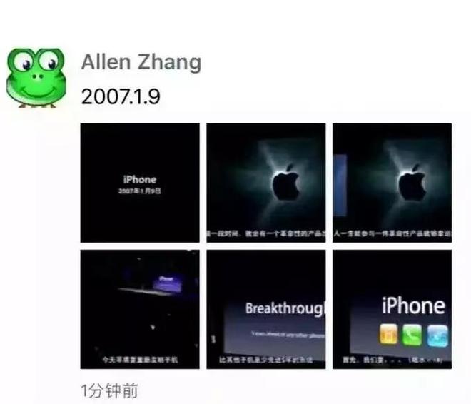 2017 年 1 月 9 日,微信正式上线「小程序」功能。当天,张小龙发朋友圈「致敬」苹果十年前发布首款 iPhone 时刻。