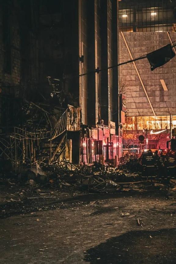 市民段先生在灭火后赶到现场,“九点十五到达,现场基本都已灭火,有警察在维持秩序。后来我通过小区进去,大概两百米左右的地方,看到消防员在排查。”他用镜头记录下消防人员进入垮塌建筑搜寻的画面,“挺危险的,让我很感触,他们都是逆行者。”
