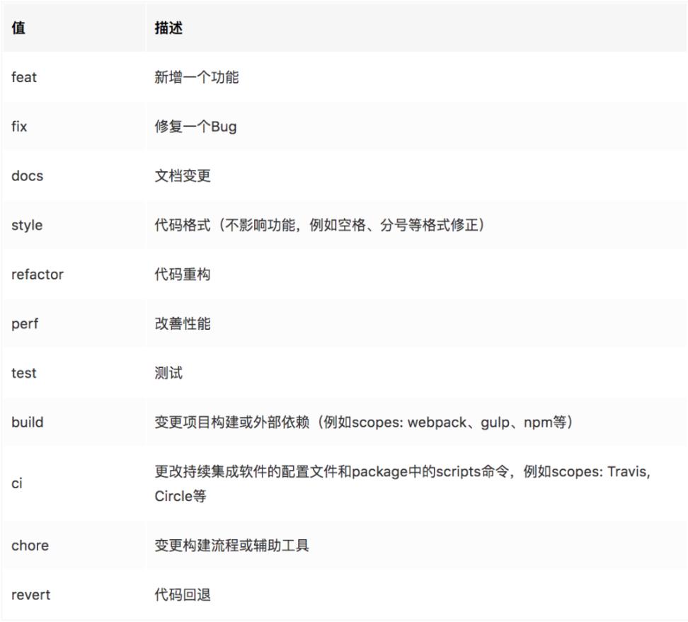 types: 描述修改的性质是什么,是bugfix还是feat,在这里进行定义。