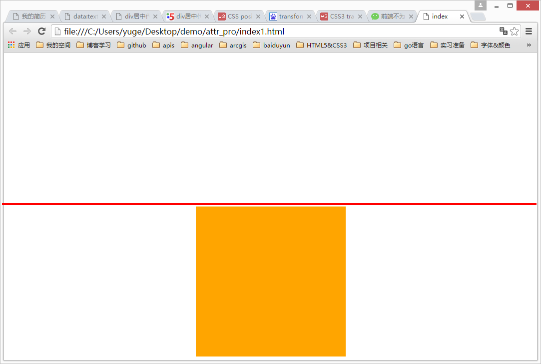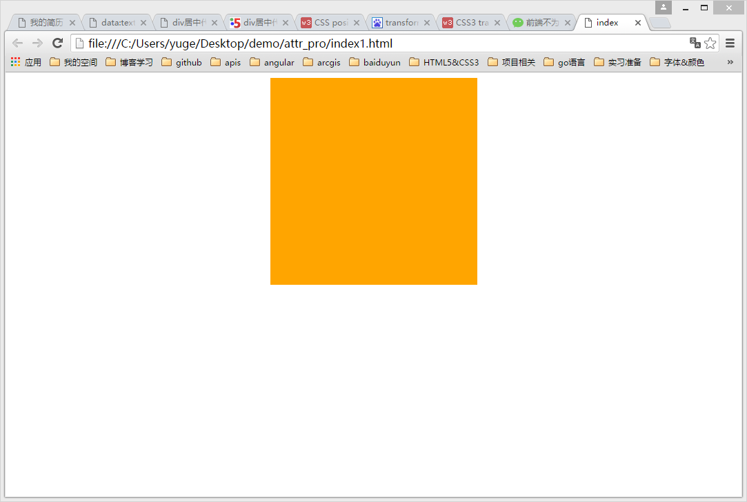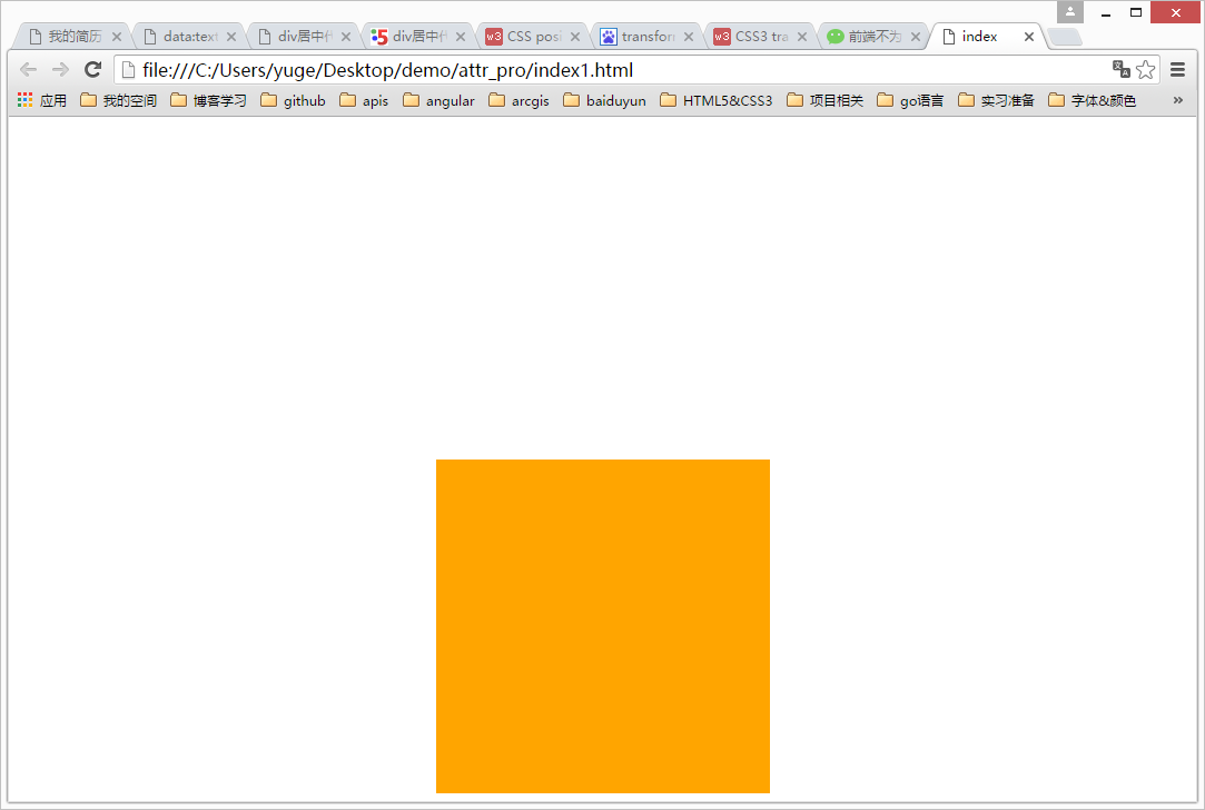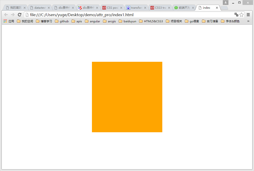 首先,定义一个需要垂直居中的div元素,他的宽度和高度均为300px,背景色为橙色。代码如下: