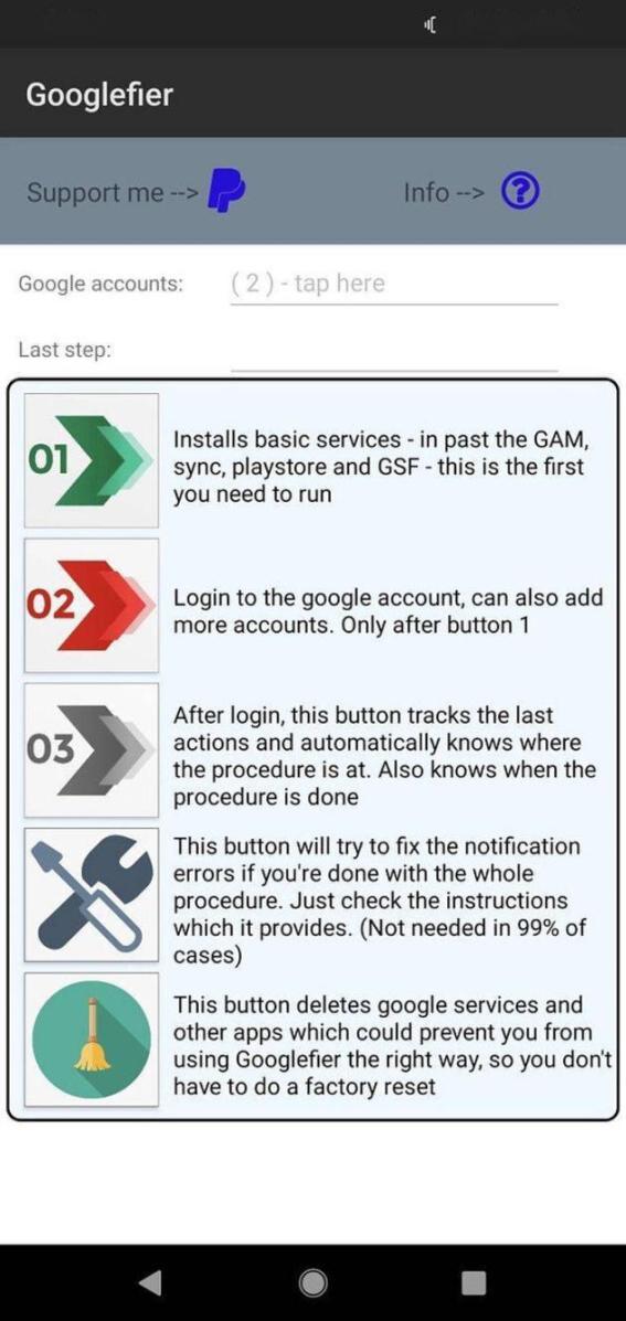 Googlefier 本质上是 XDA 高级会员 benter_007 的非官方 GMS 安装程序,他以前因从事 LG 手机的 AutoRec 项目开发而闻名。该应用提供了非常易用的操作指南和步骤,甚至不需要连接 PC 就能在华为和荣耀设备上安装 GMS 和谷歌应用程序。