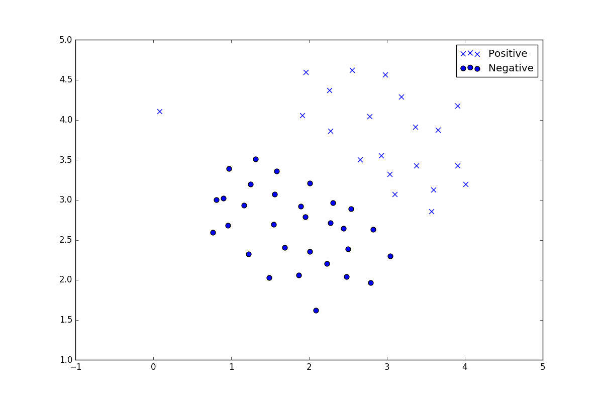 ax.scatter(negative['X1'], negative['X2'], s=50, marker='o', label='Negative')