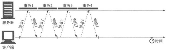 可以明显看到上面的模式,是一定要等到response到达后,客户端才能发起下一个request的,如果应用服务器需要时间处理,所有后面的请求都需要等待,即使不需要任何处理直接回复给客户端,请求,回复在网络上的时间也是必须完整的等下去,而且由于tcp传输本身的特性,速率是逐步上升的,这样断断续续的发送接收十分影响tcp迅速达到线路性能最大值。