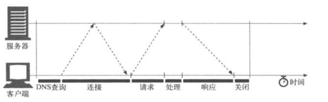 正常的http一般实现都是连接完成后(tcp握手)发生request流向服务器,然后及进入等待,收到response后才算结束(如下图)