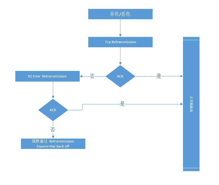 如果服务器异常误包不能马上被恢复可能会造成指数退避的情况如下图
