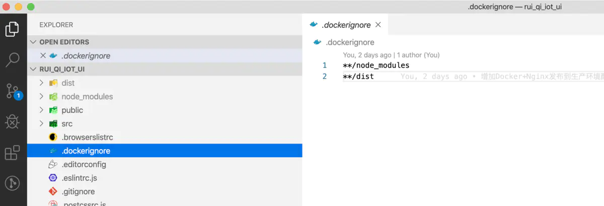 设置 .dockerignore 文件能防止 node_modules 和其他中间构建产物被复制到镜像中导致构建问题。