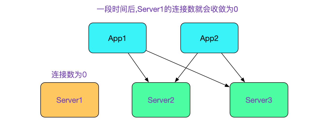 由于配置了一个connection最长保持时间,所以在这个时间之后肯定会对Server1的连接数为0