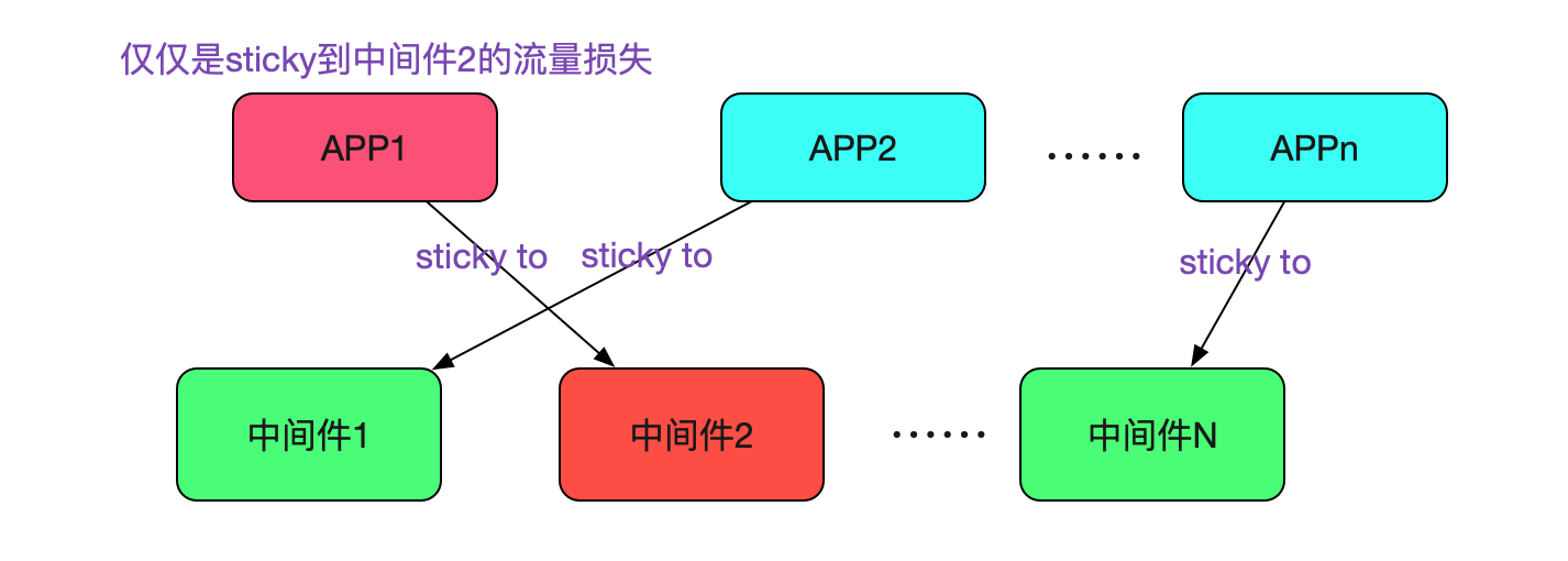 只有sticky到中间件2的请求流量才有损失,由于是随机选择,所以这个流量的损失应用在1/N。