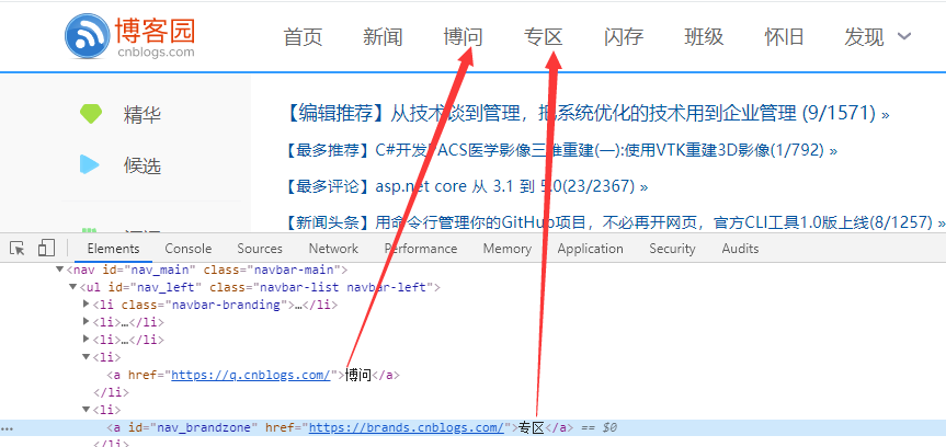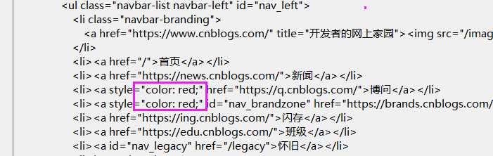 有时候为了业务需要将某些 html 标签改一下颜色,比如说将首页的 tabmenu 中 博问 和 专区 改成红色,如下图:
