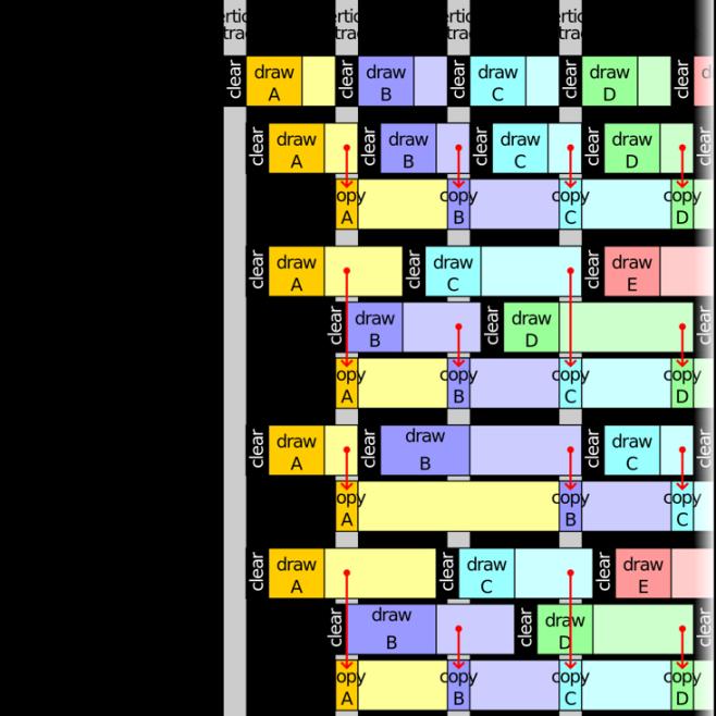 看上去第二帧图像是在等第一帧显示后的视频控制器发送 V-Sync 信号。是吗?真是这样的吗? ? 想啥呢,当然不是。 ? 不然双缓冲区就没有存在的意义了
