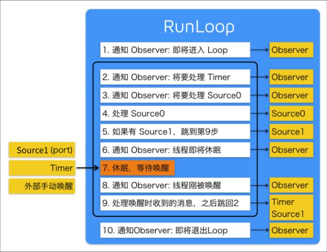 } while (1);第六步:唤醒时通知 Observer,RunLoop 的线程刚刚被唤醒了