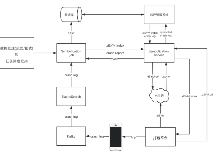Crash log 统一入库 Kibana 时是没有符号化的,所以需要符号化处理,以方便定位问题、crash 产生报表和后续处理。