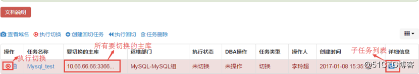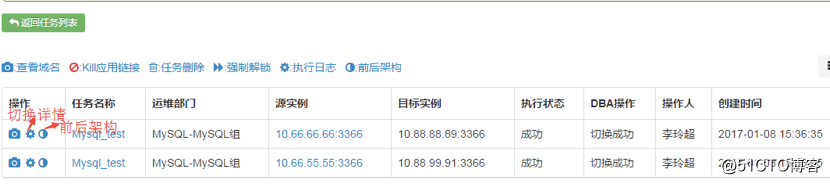 切换成功的任务会显示回切按钮,DBA可以执行回切,并查看回切的具体信息。