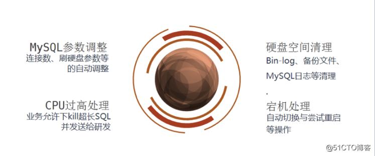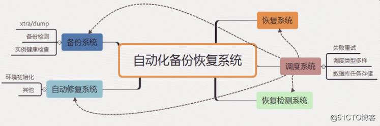 备份系统每次备份时都会进行实例健康状态检查、备份运行状态检查等,防止对无效的数据库实例进行备份;恢复系统主要是在需要进行数据恢复、弹性扩容等等需要从备份文件恢复成运行的数据库实例时使用,能够让DBA通过简单地操作即可完成数据的恢复;恢复检测在调度系统的指挥下自动对备份文件可用性进行检测,来帮助DBA及时发现不可用的备份文件;备份失败有些是能够通过失败自动重试来解决,但有一部分是重试所不能解决的,需要进行相应修复,因此开发了自动修复系统来自动修复因为环境等问题引起的备份失败。