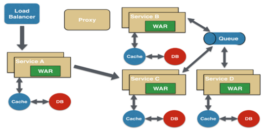 在这种情况下,部分微服务可能会共享缓存和数据库存储。不过,这只有在两个服务之间存在强耦合关系时才可以。对于基于微服务的新建应用程序而言,这是一种反模式。