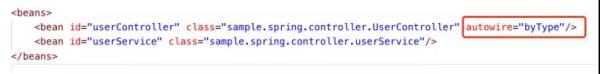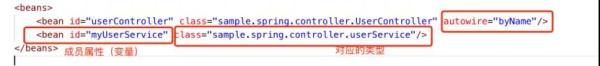 如图 16 所示,在 XML 的配置中 UserController 的 autowire 配置了“byName”。