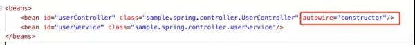 如图 14 所示,在 XML 配置文件中 UserController 只需要设置 autowire=“constructor”。