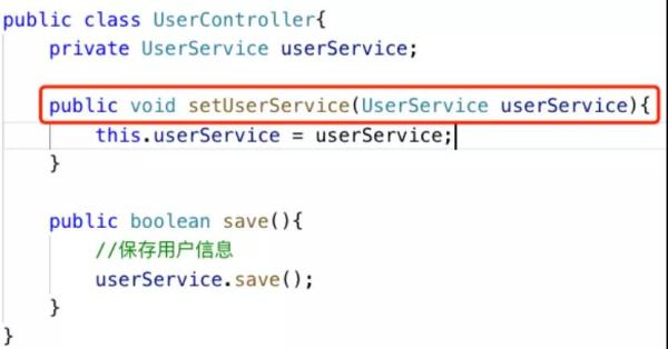 Spring 容器完成 UserService 的初始化之后,在 UserController 需要使用的时候直接使用这个 UserService 实体就行了。