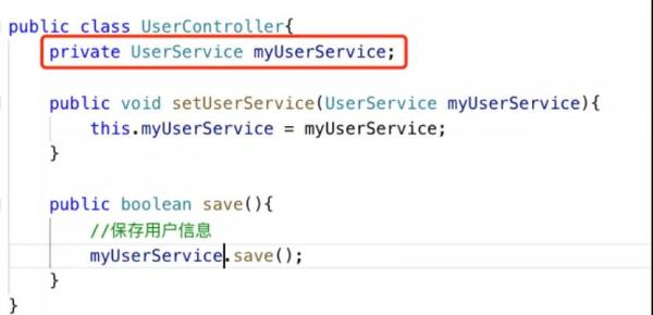 这样才能 save 方法中使用 UserService,并且调用其 save 方法。