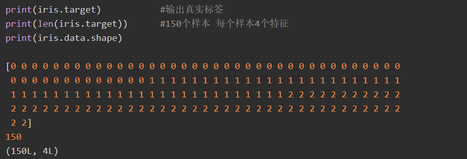 iris里有两个属性iris.data,iris.target。data是一个矩阵,每一列代表了萼片或花瓣的长宽,一共4列,每一行代表一个被测量的鸢尾植物,一共采样了150条记录,即150朵鸢尾花样本。