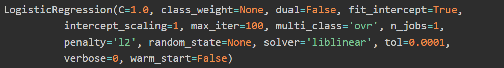 LogisticRegression回归模型在Sklearn.linear_model子类下,调用sklearn逻辑回归算法步骤比较简单,即: