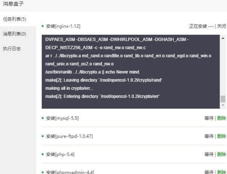 等待所有的任务都完成以后,所有的环境就搭建好了,接下来就可以建立网站了