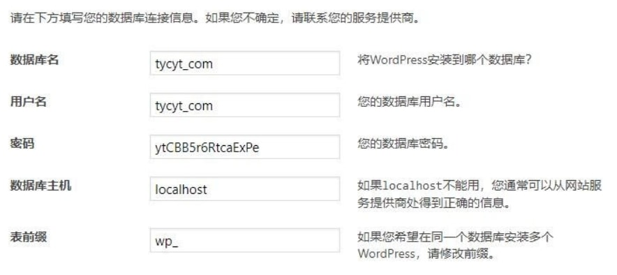 数据库信息填好以后点击提交,下一步就是安装WordPress