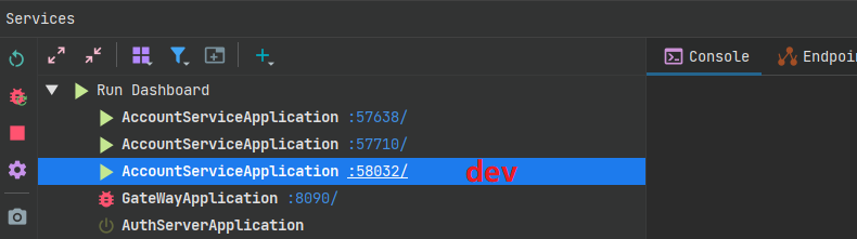 启动多个AccountService实例,对于58302端口的实例配置元数据version = dev