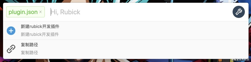 到这里,当复制 plugin.json 进入搜索框时,变可直接出现 2 个选项,一个新建插件,一个复制路径的功能: