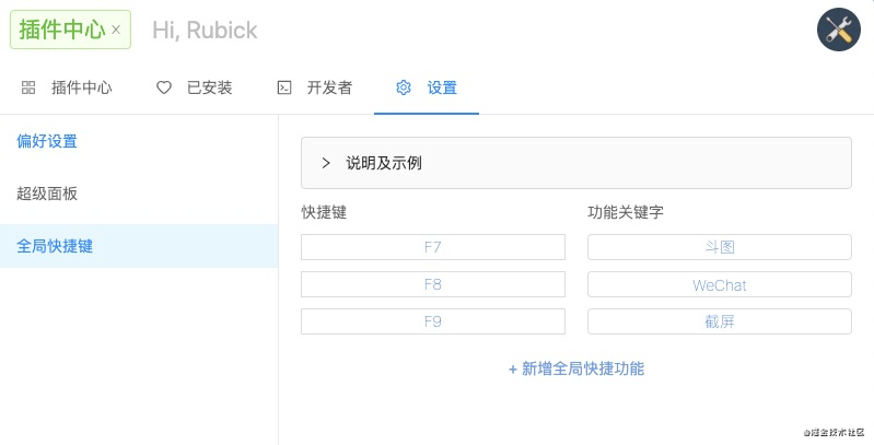 随后为了更加贴近 uTools 的体验,我又开始着手让 Rubick 支持更多原生体验增强的特性:超级面板、模版、系统命令、全局快捷键等