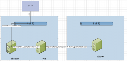 - 把存在跨域问题的接口写成调用本地域的接口,如当前打开页面为 http://127.0.0.1/index.html,将接口请求写为 http://127.0.0.1/api/getCheckCode.json