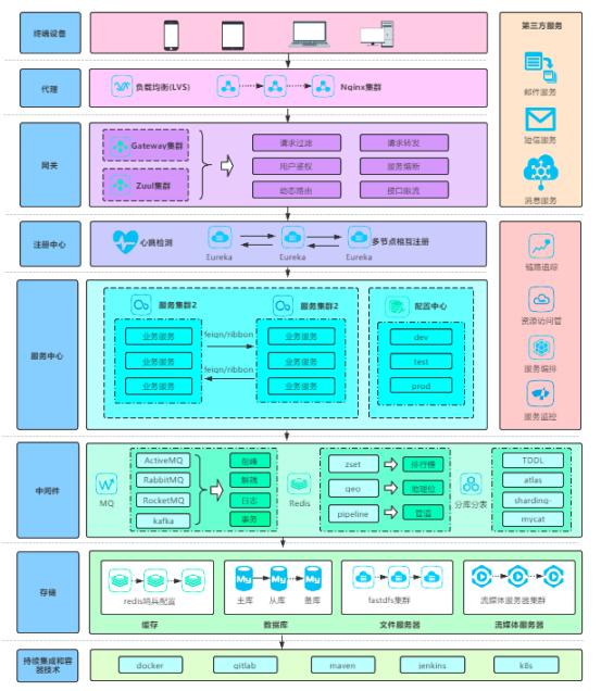 中间件 &数据存储: 为应用服务提供额外的支持能力。