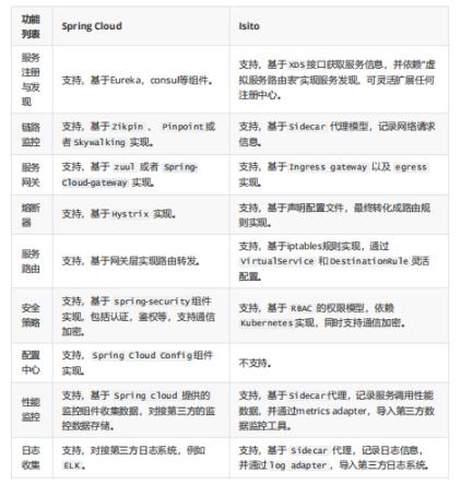 我们先来看一下 Spring Cloud 框架与 Istio 框架的功能重叠情况: