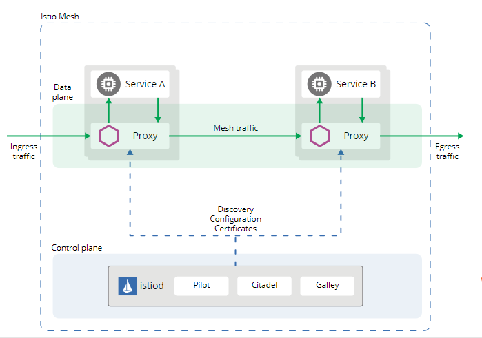 控制平面: 提供服务⽹格控制指令下发、服务配置、 权限控制等功能。