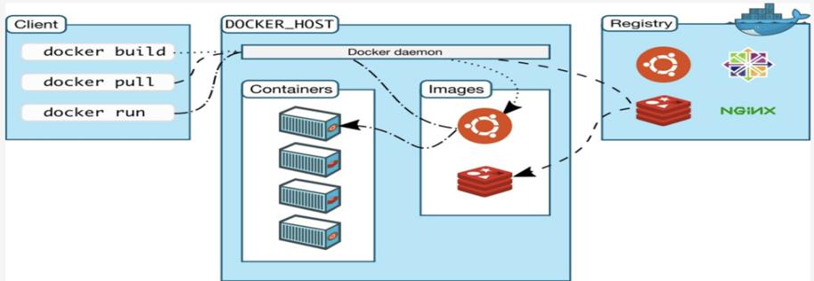 CLI(command line interface): docker client ,它包含2部分容器和镜像,1个镜像可以创建N个容器(container)