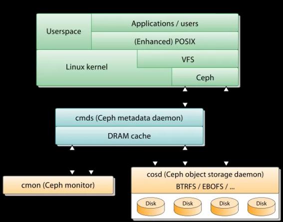 CephFS 始于 Sage Weil 的博士论文研究,目标是实现分布式的元数据管理以支持 EB 级别数据规模。2012年,Sage Weil 成立了 InkTank 继续支持 CephFS 的开发,于 2014年被 Redhat 收购。直到 2016 年,CephFS 才发布可用于生产环境的稳定版(CephFS 的元数据部分仍然是单机的)。现在,CephFS 的分布式元数据仍然不成熟。