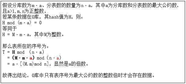 还是由错误案例一启发,我们发现案例一不合理的主要原因,就是因为库序号和表序号的计算逻辑中,有公约数这个因子在影响库表的独立性。