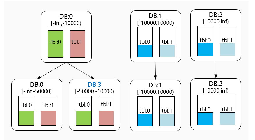 解决第二个问题,我们一般可以将很多数据库放在一个实例上,后续随着增长情况进行拆分。也可以后续针对将满的库,使用常规手段进行拆分和迁移。