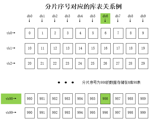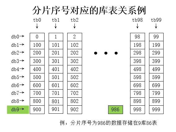 上述方案是初次使用者特别容易进入的误区,用Hash值分别对分库数和分表数取余,得到库序号和表序号。其实稍微思索一下,我们就会发现,以10库100表为例,如果一个Hash值对100取余为0,那么它对10取余也必然为0。