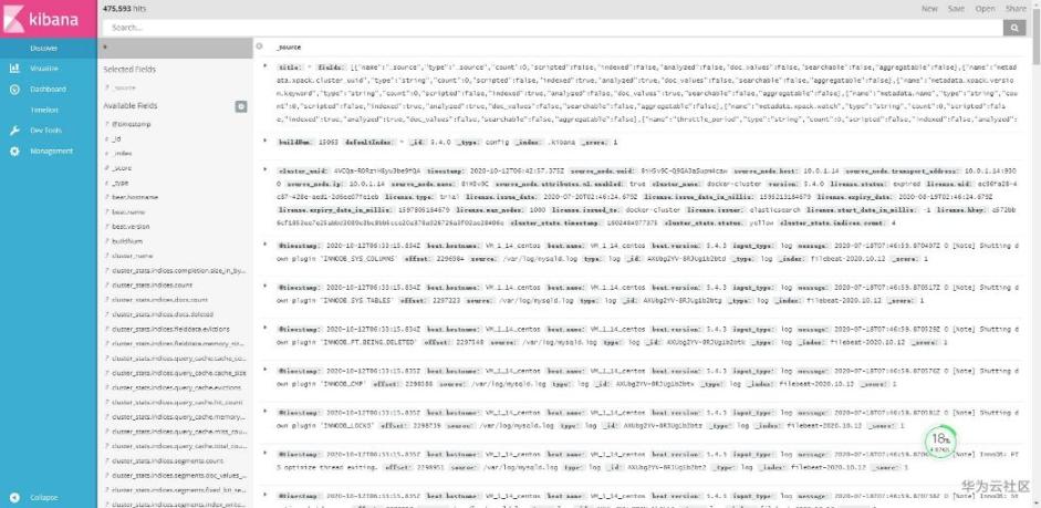 从上面两幅截图可以看到,/var/log/ 目录下的 mysqld.log 文件中产生了新的日志数据,这些数据非常多,我们在生产环境需要根据实际的业务进行过滤,并处理相应的日志格式。