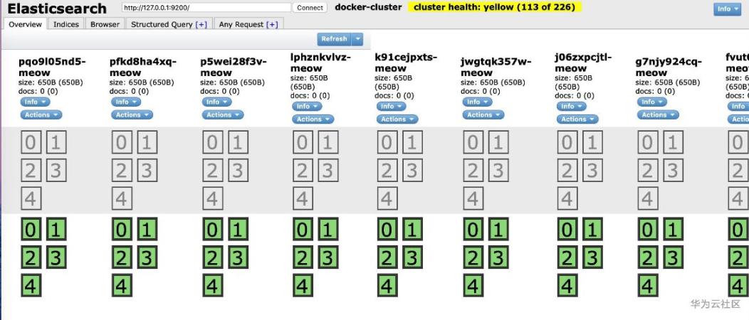 我们运行所有的组件之后,首先看下 elasticsearch-head 中的索引变化: