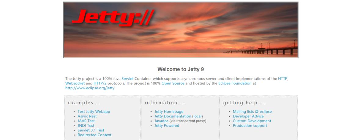 Jetty已经成功运行了,监听8080端口,浏览器直接访问就Ok了 http://localhost:8080