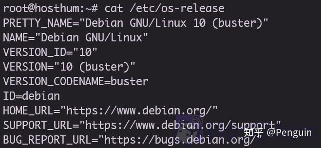 /etc/os-release 是一个包含操作系统标识数据的文件,它只能在运行 systemd 的最新 Debian 发行版上找到。同样可以使用 cat 命令查看该文件的内容,输入下面的命令: