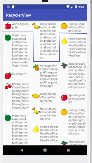 上图是GridLayoutManager,下图是StaggeredGridLayout。