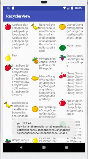Toast.makeText(view.getContext(), "you clicked image" + fruit.getName(), Toast.LENGTH_SHORT).show();