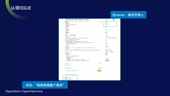 登录找到想要认领的问题单的页面,在评论中表达出想要承接这个需求的意愿,SIG 的负责人会定期跟踪这些问题单并做出答复。