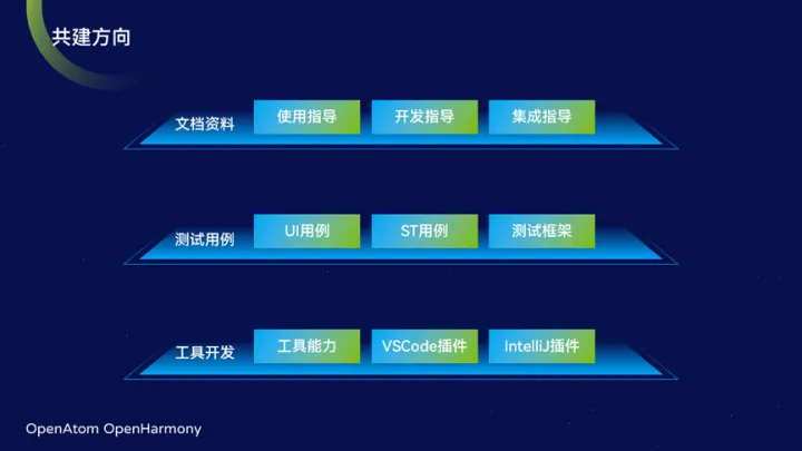 目前深开鸿主导的辅助工具 SIG 组主要提供给开发者文档资料、测试用例和工具开发 3 个共建方向。