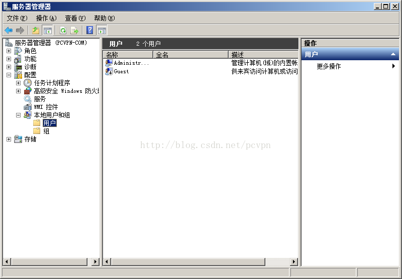 VPN服务器配置成功后,还需要帐号连接。在这里我推荐使用PCVPN管理系统,因为PCVPN管理系统专为管理VPN用户而设计,可以设置VPN用户连接数、VPN用户限速、设置VPN用户到期时间等功能,达到你轻松管理VPN用户的目的。当然你也可以用系统自带的管理VPN用户。