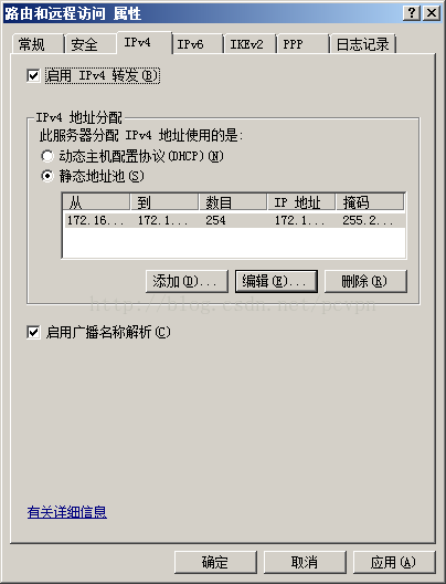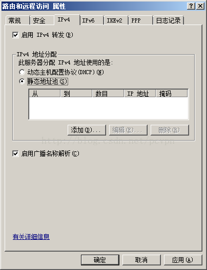 3.5、在弹出的窗口中选译“IPv4”-“静态地址池”点击“添加”